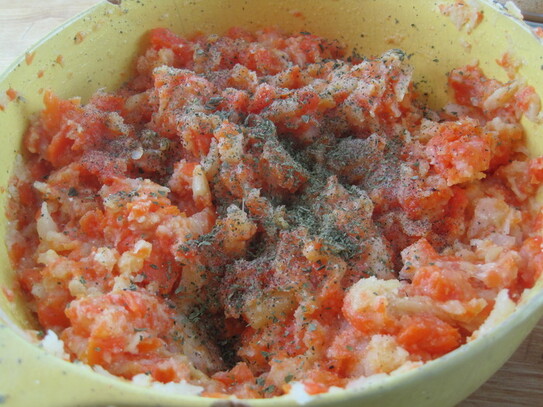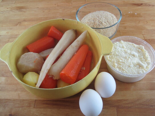 - zarzavat fiert din supă (3-4 morcovi, 1-2 rădăcini de pătrunjel, o ţelina mică, un cartof)