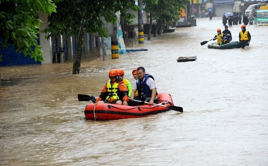 Inundaţii cauzate de taifunul Chan-hom în Shaoxing, provincia Zhejiang, China, 11 iulie 2015. (STR/AFP/Getty Images)