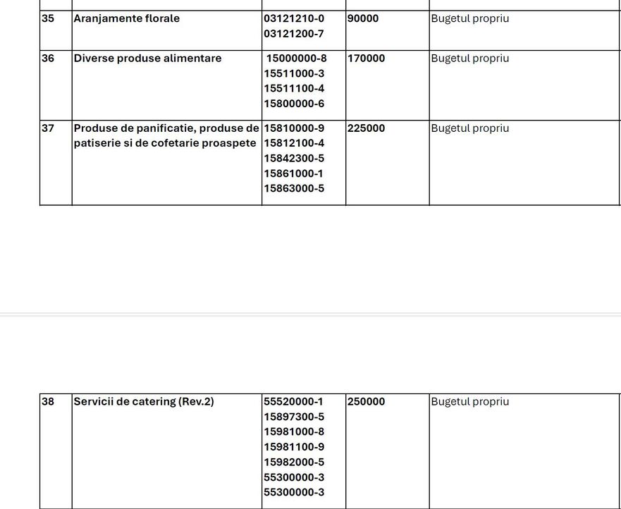 - achiziţia de servicii de catering (mâncare şi băutură) 250.000 lei