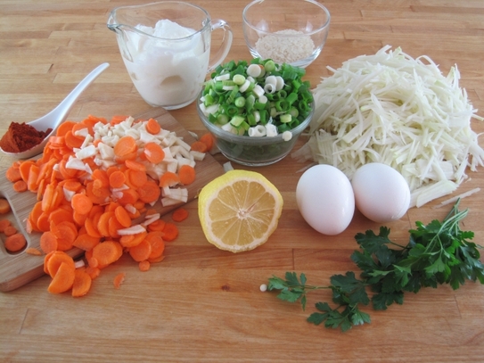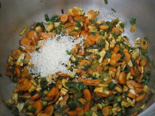Ceapa mărunţită se căleşte într-o lingură de unt sau ulei pentru aproximativ un minut. Apoi, se adaugă morcovii şi pătrunjelul, şi se acoperă amestecul timp de cinci minute.