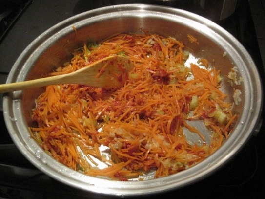- 2 morcovi ( tăiaţi julien sau raşi prin răzătoare)