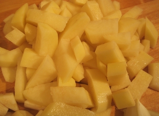 - 4 cartofi de mărime potrivită tăiaţi în cubuleţe