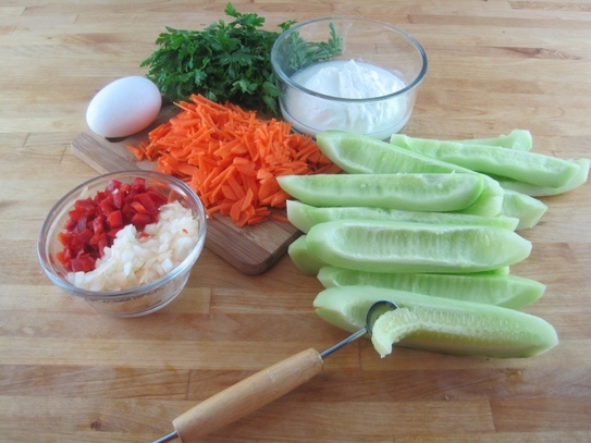 Castraveţii se taie în patru, apoi se curăţă de coajă şi seminţe şi se taie în bucăţele de circa 1-2 cm grosime.