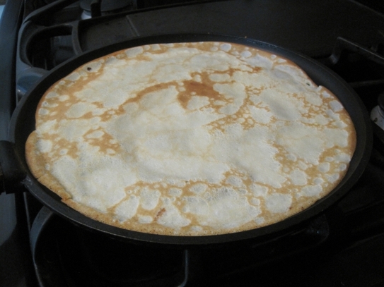 Cu ajutorul unui polonic se ia din aluatul de clătite (cam 30-45 ml de aluat pentru o clătită), şi se întinde uniform pe fundul tigăii. Când clătita începe să se desprindă de pe marginile tigăii, se întoarce pe partea cealaltă şi se mai lasă cam un minut. Se repetă operaţia până când se termină tot aluatul de clătite.