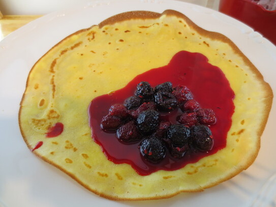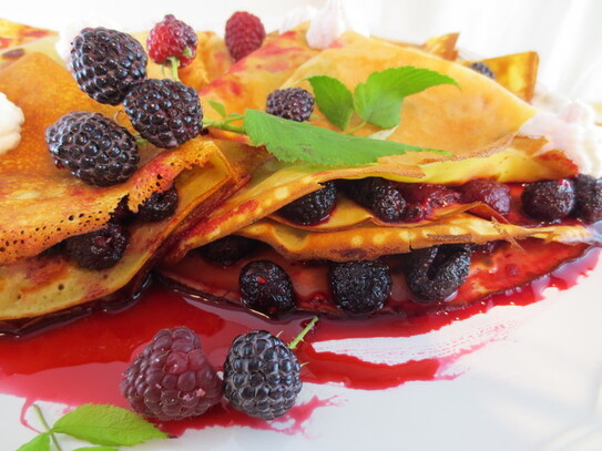 Clătite cu ciocolată albă umplute cu fructe de pădure