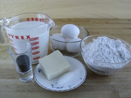 Într-un castron, se combină ouăle, laptele, untul/ uleiul, zahărul şi sarea, amestecând până când compoziţia se omogenizează. Se adaugă făina şi se amestecă în continuare până ce se omogenizează, având grijă să nu se facă cocoloaşe. Compoziţia finală va trebui să aibă consistenţa unei smântâni groase. La sfârşit se adaugă seminţele de mac, se acoperă vasul şi se bagă la frigider pentru cel puţin 2 ore.