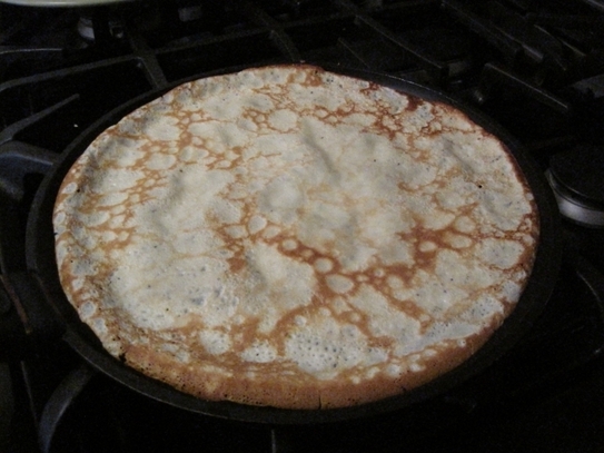 Pentru a face clătitele se foloseşte o tigaie cam de 15 cm în diametru. Tigaia, uşor unsă cu grăsime, se pune la încins la foc mediu. Adăugaţi 1/2 polonic (60 ml) de aluat în tigaie, apoi rotiţi uşor tigaia pentru a ajuta aluatul să acopere uniform baza tigăii. Coaceţi aproximativ 1 minut sau până când marginile devin foarte uşor maronii, iar partea de deasupra a clătitei pare uscată. Întoarceţi clătita pe cealaltă parte şi coaceţi în continuare cam 30 de secunde. Se repetă până când toate clătitele sunt făcute, având grijă să mai ungeţi din când în când tigaia cu puţin ulei dacă este necesar.