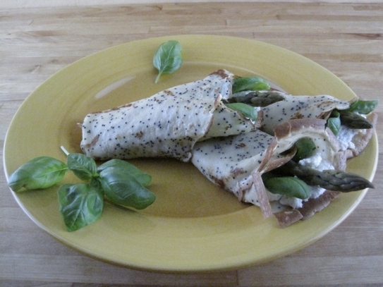 Clătite cu mac, umplute cu urdă şi sparanghel