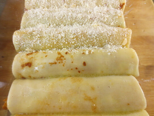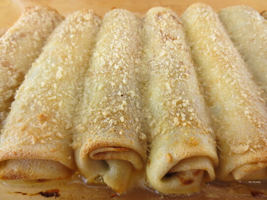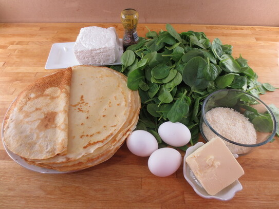 Clătite la cuptor - umplute cu spanac şi brânza dulce