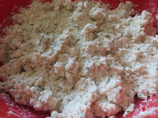 Între timp se pregăteşte umplutură cu urdă. Într-un castron, se zdrobeşte urda cu ajutorul unei furculiţe, apoi se amestecă cu câteva linguri de zahăr, se adaugă zahărul vanilat şi mărarul verde tăiat mărunt, şi se continuă amestecarea până când compoziţia devine omogenă.