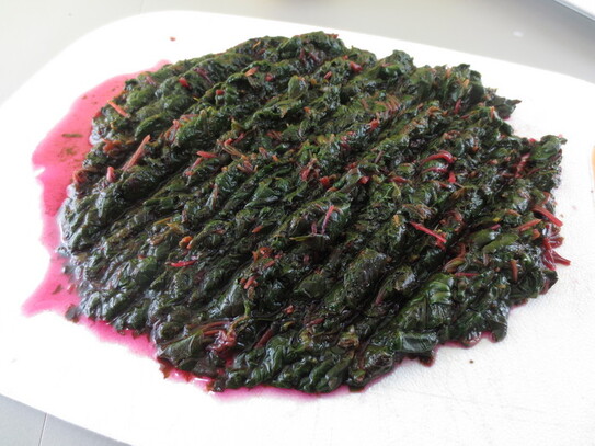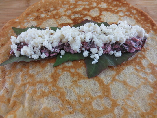 Frunzele fierte combinate cu brânză sărată şi mărar sunt deosebite, rezultând o umplutură de culoare roz vibrantă, care se poate folosi cu succes la umplerea clătitelor sau la alte feluri de plăcinte.