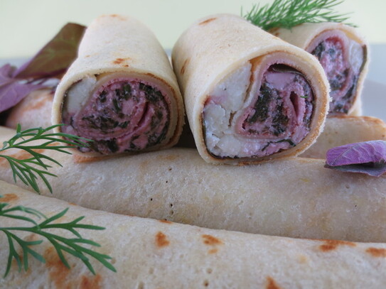 Clătite umplute cu lobodă şi brânză telemea - un aperitiv elegant