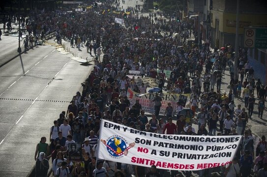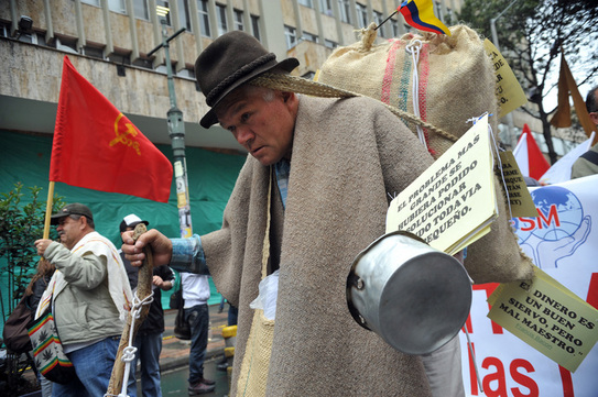 Mii de „campesinos” (ţărani), susţinuţi de către şoferi de camioane, studenţi, medici şi bugetari au mărşăluit în ultimele 24 de ore pe străzile principalelor oraşe din Columbia, inclusiv ale capitalei Bogota, în cea de-a 11-a zi a „Paro nacional agrario" - o grevă agrară naţională -, mobilizare rurală care testează guvernul lui Juan Manuel Santos. La conducerea acestei greve sunt în principal producătorii de cartofi, ceapă, fructe şi produse lactate care au paralizat marile artere stradale din diferite regiuni ale ţării. Manifestaţia împiedică furnizarea necesităţilor de bază în centrele urbane.