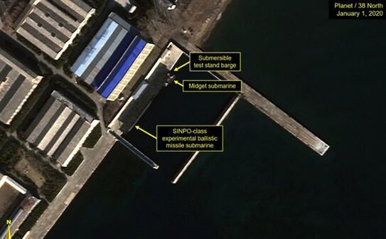 Potrivit celor doi analişti, „imaginile SAR au scos la iveală prezenţa submarinului dotat cu rachete balistice experimentale din clasa SINPO din Coreea de Nord (SSBA) şi a barjei sale de testare poziţionaţi sub o copertină construită recent, destinată ascunderii şi protejării acestor vase.