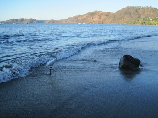 Deşi nu există niciun refugiu pentru fauna sălbatică pe Playa Hermosa nordică, am reuşit să văd destul de multe animale, care nu se întâlnesc de obicei pe plaje. La capătul plajei, unde sunt puţini oameni, am văzut un cocor alb care vâna peşte la mal la lăsarea serii.