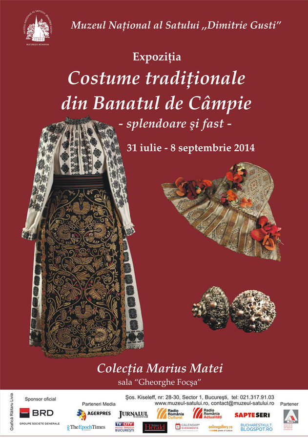 Sala de Expoziţii „Gheorghe Focşa” a Muzeul Naţional al Satului "Dimitrie Gusti" găzduieşte între 31 iulie – 8 septembrie expoziţia „Costume tradiţionale din Banatul de Câmpie – splendoare şi fast ” în colaborare cu Marius Matei, colecţionar pasionat de obiecte etnografice şi muzeograf angajat al Muzeului Satului Bănăţean, Timişoara.