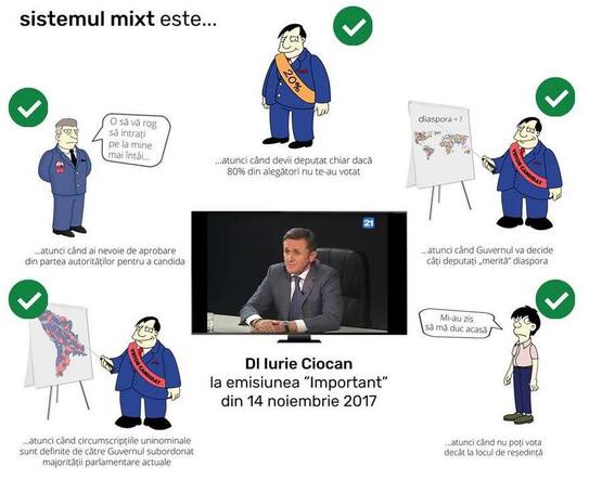 „În cadrul emisiunii "Important", de la TVC 21, Iurie Ciocan, director al Centrul de Implementare a Reformelor, de pe lângă Guvernul Republicii Moldova, a confirmat mai multe dintre motivele pentru care CPR Moldova, alături de alte ONG-uri, a fost, de la bun început, împotriva introducerii sistemului electoral mixt. Aceste prevederi, luate împreună, vor afecta negativ pluralismul şi democraţia din ţara noastră.
