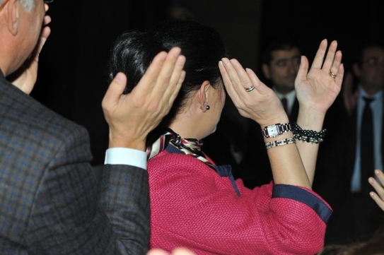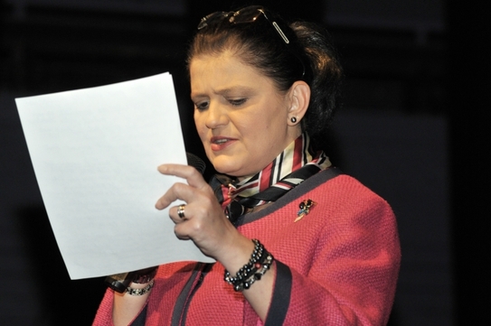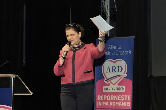 În sala mare de la ArCuB, în duduitul (prea) puternic al boxelor, al imnului ARD, al imaginilor din firme istorice gen Mihai Viteazul, inima îmi bătea într-adevăr prea repede. Show-ul aplaudat de un public entuziast , ceva mai vârstnic, dar bine dotat cu baloane, a început cu Anca Boagiu, vicepreşedinte PDL şi proaspăt aleasă vicepreşedinte a PPE. Cele mai dese cuvinte folosite: adevărul pe care îl spun ei (PDL) şi ”minciunile lui Ponta”. A citat chiar şi din Evanghelia după Ioan: ”Nu vă ruşinaţi de adevăr pentru că este de la Dumnezeu, ruşinaţi-vă de minciună pentru că este de la diavol”.