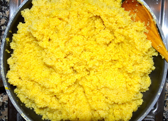 - dacă legumele au fost tăiate mărunt, atunci cuşcuşul este amestecat împreună cu acestea formând un compus unic;