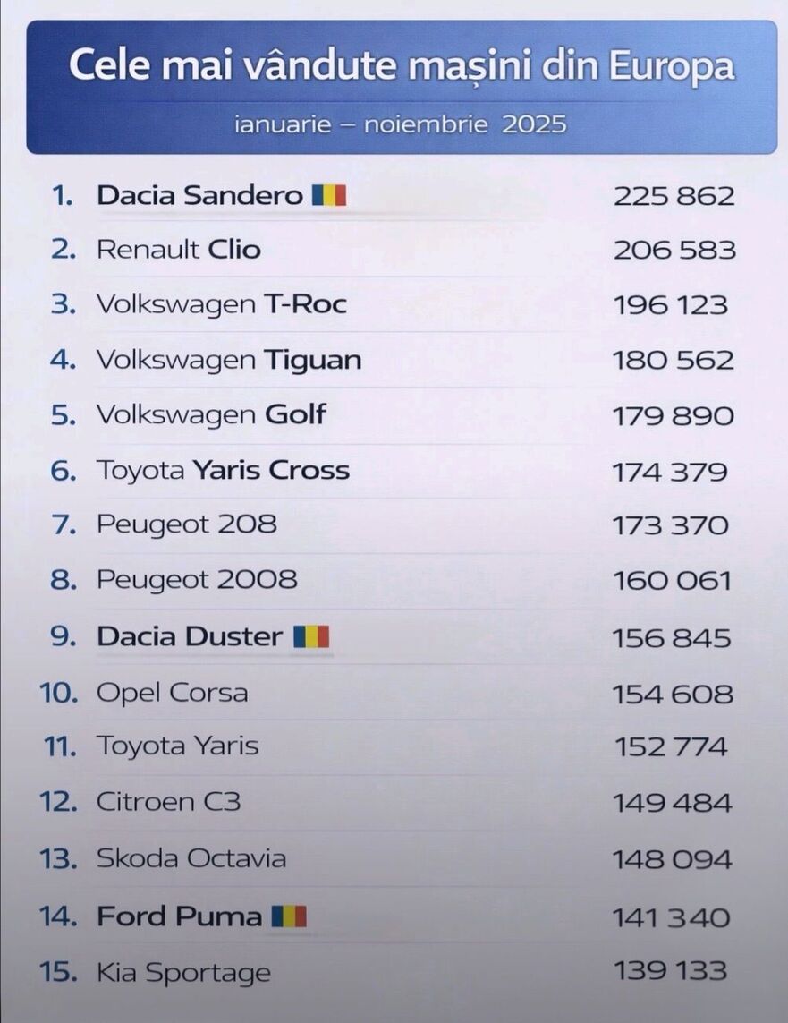"Alături de Sandero, Dacia Duster şi Ford Puma (produs la Craiova) se situează constant în topurile de vânzări. În 2025, în România au fost produse peste 550.000 de autovehicule, conform statisticilor industriei auto. Sectorul auto rămâne unul dintre principalii piloni ai economiei româneşti, având o contribuţie semnificativă la exporturi şi la valoarea adăugată industrială. Afirmaţia potrivit căreia 'nu se mai produce nimic în România' este contrazisă de datele economice. România produce astăzi mai mult şi mai diversificat decât în anii ’90, într-un context economic complet diferit, integrat în lanţurile europene şi globale de producţie", a arătat Cristi Danileţ.