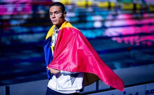 Înotătorul român a urcat pe prima treaptă a podiumului probei de 200 m liber din cadrul Sette Colli Trophy, duminică, cu un nou record al competiţiei - 1:45.49 min.
