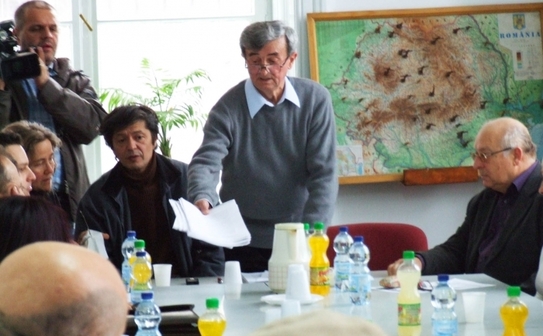 Gazda evenimentului, domnul ing. Teodor Stanca, presedintele Asociatiei Fostilor Detinuti Politici, a deschis discutia printr-un discurs care prezenta motivele intalnirii, impreuna cu nemultumirea sa vis-a-vis de decizia Curtii Constitutionale care a admis, pe 21 octombrie, exceptia de neconstitutionalitate ridicata de statul roman, prin Ministerul Finantelor Publice, in peste 180 de dosare, in cazul mai multor aspecte din art.5 alin.(1) lit. a) a Legii 221/2009.