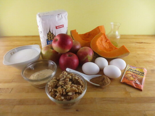 Din coşul plin de bogăţii al toamnei - Plăcintă răsturnată cu mere, nuci şi dovleac