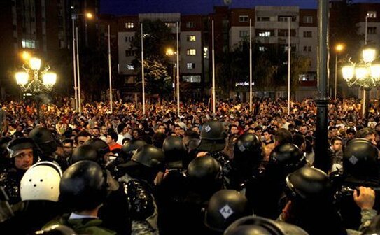 Un fotoreporter şi un ofiţer de poliţie au fost răniţi în timpul protestelor de miercuri din capitala macedoneană Skopje, manifestanţii adunându-se o a doua noapte pentru a cere demisia guvernului, informează infoBalkans.com.