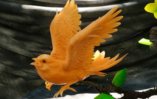 Anghel Boraliev este un artist în tăiatul fructelor şi a legumelor din Bulgaria. Le transformă în impresionante “sculpturi” tridimensionale de animale, flori şi diferite obiecte.