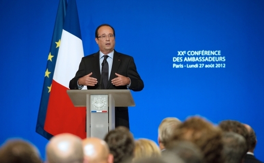 Preşedintele Franţei, François Hollande, a fixat luni, în primul său mare discurs de politică externă după sosirea la Palatul Elysée, liniile majore ale acţiunii pe care intenţionează să o desfăşoare pe plan internaţional având ca dublă prioritate Europa şi Siria. Şeful statului inaugura prin intervenţia sa, cea de-a 20-a Conferinţă a ambasadorilor, care reuneşte până miercuri circa 200 de diplomaţi francezi, notează marţi Les Echos.