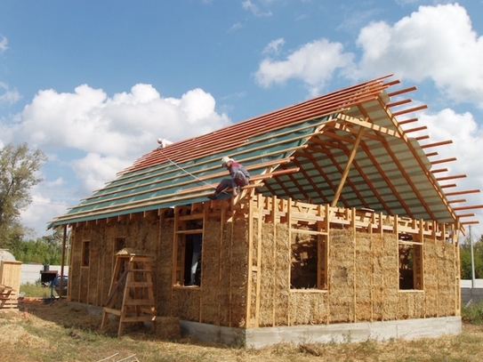 De exemplu, pereţii goi sunt umpluţi cu baloturi de paie, cu toate că în mod tradiţional, ucrainenii nu aveau prese de balotat, susţine Fasolya. În astfel de clădiri, baloturile de paie sunt introduse în cadrul exterior şi în pereţii interiori, care sunt construiţi din chirpici uscat la soare.