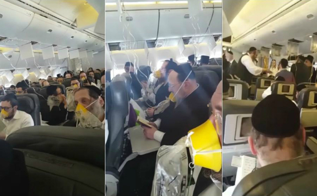 Dar, în timpul zborului, a fost menţionată o scenă curioasă care s-a răspândit rapid pe reţelele sociale şi pe Youtube: pasagerii evrei, care erau în majoritate, au început să se roage cu măştile de oxigen pe faţă.