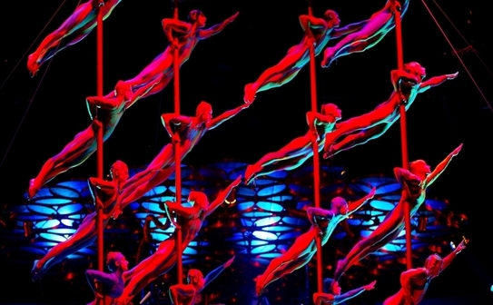 Show-ul, care durează aproape două ore şi jumătate, începe cu un număr de acrobaţie intitulat "Adagio", în care acrobaţii formează figuri cu trupurile lor, fiind urmat de scena cu "Prăjinile chinezeşti" - o demonstraţie impresionantă de agilitate, forţă şi viteză.