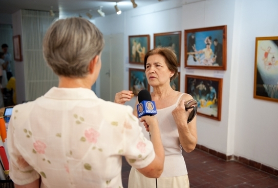 Conf.dr. Marilena Preda Sinc a vorbit despre valoarea artistica a lucrarilor si s-a referit la mesajul universal de adevar, compasiune, toleranta, transmis de artisti prin intermediul personajelor din tablouri: practicanti Falun Dafa care indura cu demnitate si curaj o soarta inumana.