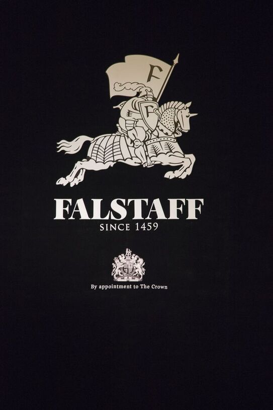 Reprezentaţia actuală a operei “Falstaff” a vădit ironia şi umorul tipic britanic al regizorului, cu care au fost tratate aspectele societăţii actuale, cum ar fi căderea valorilor în derizoriu, fluxul sufocant de produse şi de publicitate, prostul gust şi multe altele. Astfel, încă de la începutul spectacolului, pe cortină am putut vedea “blazonul” Falstaff, care aducea cu o marcă de firmă, sau chiar cu o etichetă de bere: “Falstaff. Since 1459, By appointment to the Crown”. Aproape de marginea scenei, în faţa cortinei, zăcea un coş de gunoi cu sticle goale de alcool şi tot soiul de pungi.
