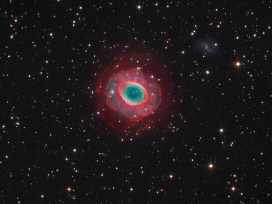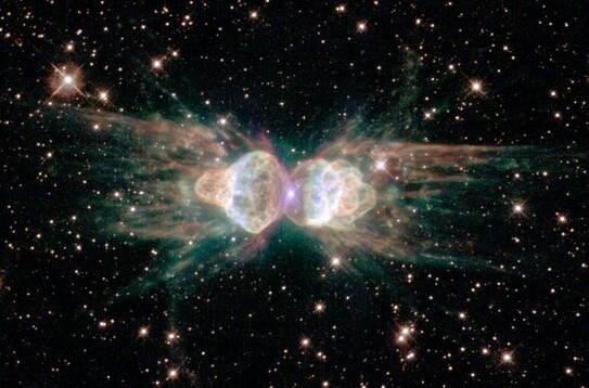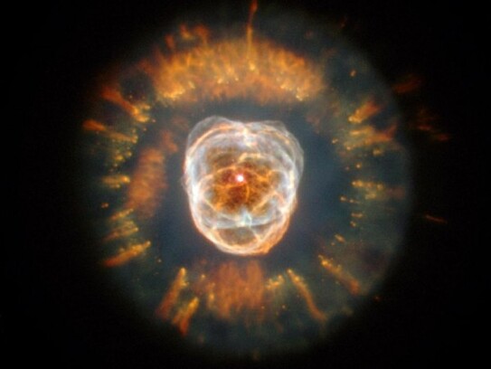 - Multă materie este împinsă spre exterior, formând nebuloasa spectaculoasă din jurul stelei care moare.