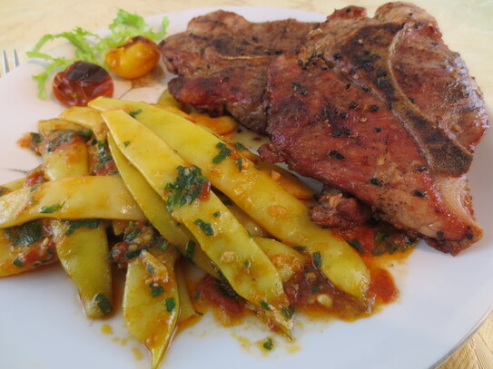 Roşia e opţională pentru această reţetă, dar dacă doriţi un sos delicios pe lângă fasole, o roşie în cubuleţe mici aduce o consistenţă acrişoară sosului dulceag ce rămâne de la fierberea păstăilor.