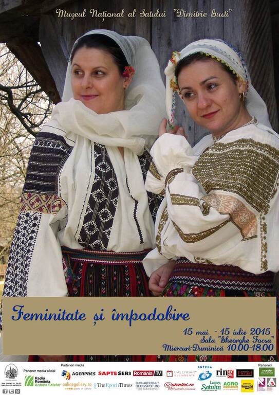 Vernisajul expoziţiei de etnografie Feminitate şi împodobire este programat cu începere de la ora 15.00 în Sala Gheorghe Focşa din Şos. Kiseleff nr. 28. Expoziţia îşi propune să valorifice colecţia de port popular a muzeului reunind cele mai frumoase costume tradiţionale de sărbătoare româneşti şi ale grupurilor etnice, piese de găteala capului şi podoabe de mare ţinută, unele dintre acestea fiind pentru prima dată expuse, cât şi documente fotografice. Expoziţia va putea fi vizitată în perioada 15 mai – 15 iulie, de miercuri până duminică, între orele 10.00 – 18.00.