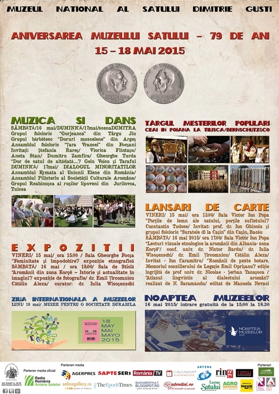 Anul acesta, în data de 17 mai, Muzeul Naţional al Satului „Dimitrie Gusti” din Bucureşti aniversează 79 de ani de existenţă. Cu această ocazie, vor avea loc o serie de activităţi în perioada 15 -18 mai, menite să cinstească acest moment important din istoria muzeului.