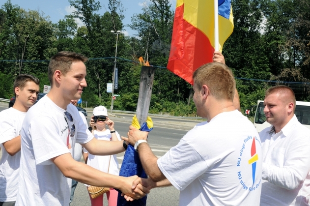Un grup de tineri bucureşteni cu viziune politică de centru-dreapta au preluat joi, de la colegii lor din Ilfov, "Flacara Democraţiei", simbolul rezistenţei împotriva călcării în picioare a statului de drept de către Uniunea Social Liberală.