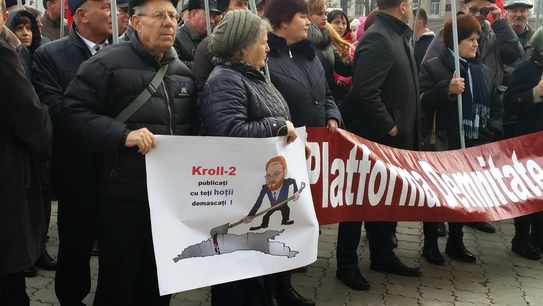 Totodată, oamenii au scandat în continuu „Miliardele înapoi”, „Cerem Kroll II”, „Miliardul înapoi şi raportul Kroll II”, „Publicare integrală”, „Jos mafia”, „Drăguţanu (fostul guvernator BNM n.r.) nu uita, ai şi tu celula ta”, „Cioclea nu uita, ai şi tu celula ta”, „Cioclea nu ascunde hoţii”, „Plahotniuc nu uita, puşcăria e casa ta”, „Kroll-ul nu e o jucărie, vă poftim la puşcărie”, „Hoţii la dubă”.