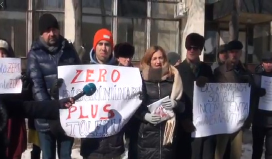 Participanţii la manifestaţie au scandat: „Zero discriminare, plus toleranţă!”, ”Toleranţă zero, preşedinte zero!”.