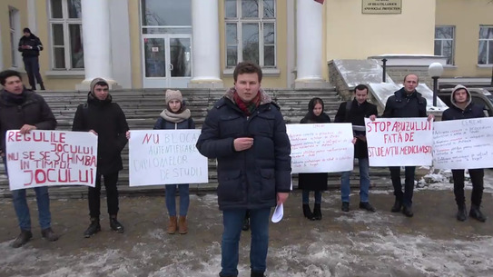 În contextul informaţiei apărute săptămâna trecută privind refuzul Ministerului Sănătăţii de autentificare a actelor de studii ale absolvenţilor şi rezidenţilor Universităţii de Medicină care au învăţat la buget, organizaţiile de tineret ale Platformei Demnitate şi Adevăr şi Partidului Acţiune şi Solidaritate (PAS) au organizat un flashmob cu genericul „Ministerul Sănătăţii încalcă grav drepturile studenţilor medicinişti!", în faţa instituţiei.