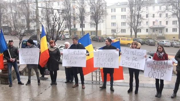 Asociaţia „UNIREA – ODIP” a organizat joi dimineaţă un flashmob în faţa Judecătoriei Chişinău cu sediul Buiucani, cu genericul „Jos mâinile de pe unionişti”. Ulterior participanţii la eveniment au intrat cu toţii în incinţa Judecătoriei pentru a asista la şedinţa de judecată, după ce autorităţile au amendat organizaţia de tineri unionişti cu circa 40 mii lei pentru că ar fi colectat semnături pentru Unirea Republicii Moldova cu România.