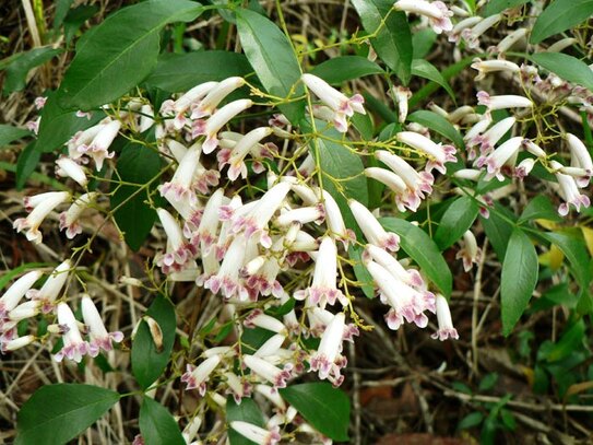 O altă plantă căţărătoare cu flori deosebite este Pandorea pandorana. Aceasta produce flori galbene, cu interior roşu, ce atrag păsările.