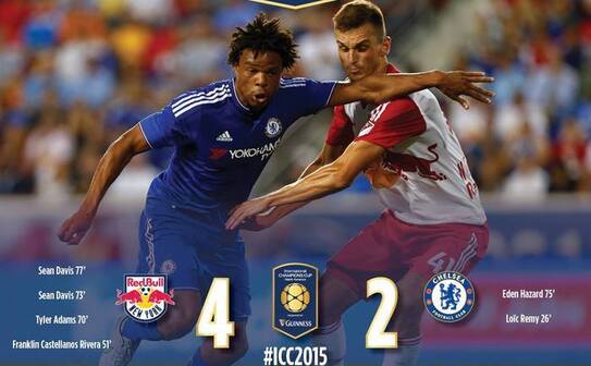 Campioana en titre a Angliei, Chelsea Londra, a pierdut cu scorul de 4-2 în faţa echipei americane de fotbal New York Red Bulls, într-un meci din cadrul turneului Internaţional Champions Cup, disputat miercuri seara la New Jersey.
