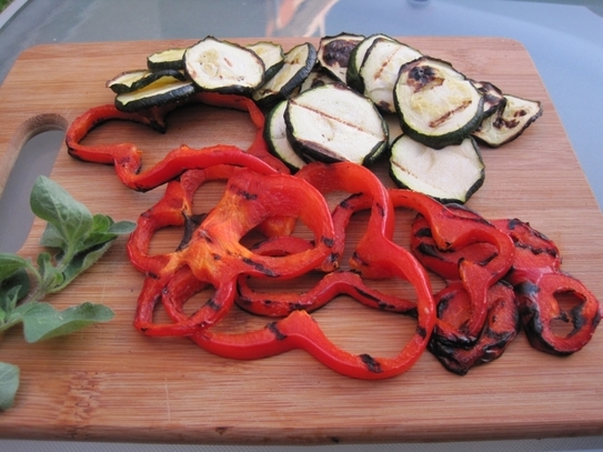 Dovlecelul şi ardeiul se taie în rondele, după care se frig pe grătar sau plită, pe ambele părţi.