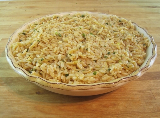 Orezul se fierbe în 3 căni de apă, în care s-a adăugat o jumătate de linguriţă de sare şi un cubuleţ de 15- 20 g de unt. După ce s-a fiert, orezul se scurge de apă şi se lasă deoparte să se tempereze.