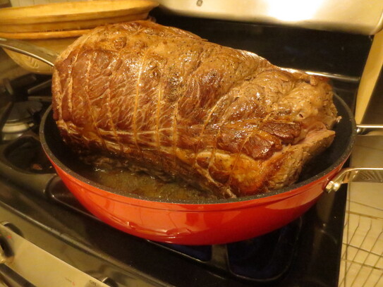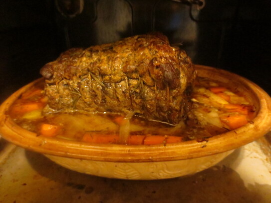 Temperatura cuptorului se reduce la 80C şi se lasă în continuare să fiarbă până ce carnea devine foarte fragedă. Puteţi calcula timpul de preparare în felul următor: pentru o bucată întreagă de un kilogram se ţine timp de 3-3 1/2 ore, la care se adaugă câte o oră pentru fiecare kilogram în plus. De exemplu pentru o bucată de 2 kg - friptura e gata în 4 - 4 1/2 ore.