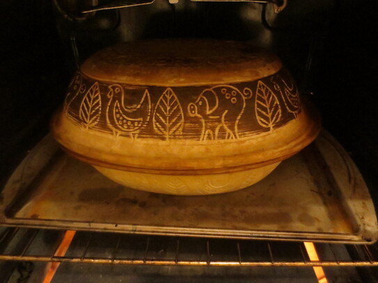 Notă: Dacă la prepararea fripturii folosiţi vas de lut, este recomandat ca inainte de folosire acesta să stea l-a înmuiat în apă pentru cel puţin câteva ore. Este preferat un vas mare cu capac. În cazul în care nu aveţi la îndemână un vas cu capac, acoperiţi vasul cu o bucată de hârtie de copt.